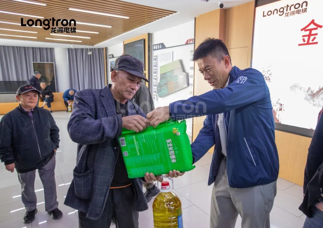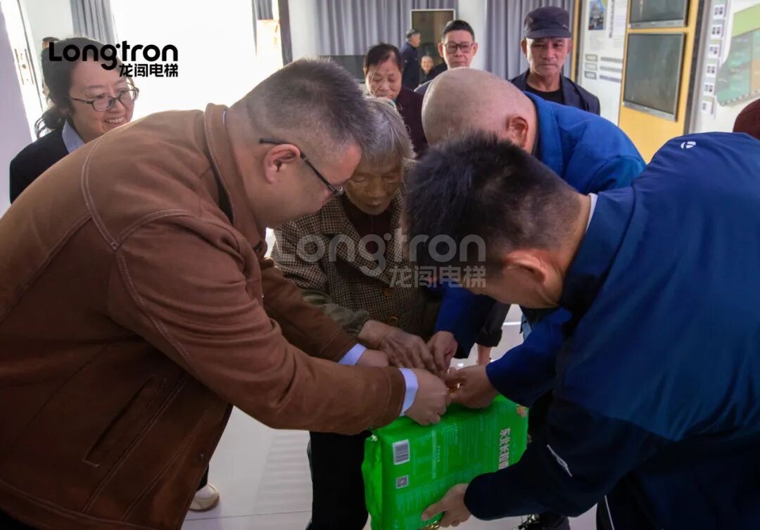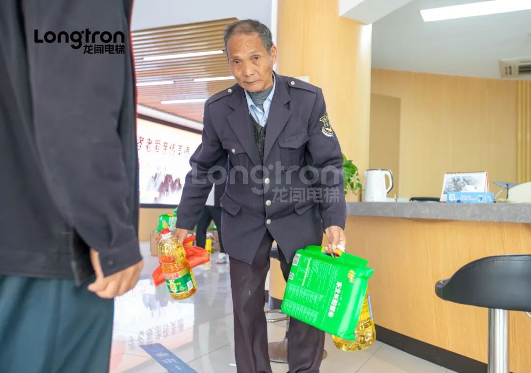 今天,龍闖電梯與街道工作人員一起,走進社區低保老人家庭,為他們送上精心準備的生活慰問品,并致以節日的問候與關懷。
